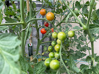 Im Juli haben wir mittlerweile einen Paradeiser Urwald. Nächstes Jahr müssen wir sie viel früher ausgeizen und Blätter entfernen.